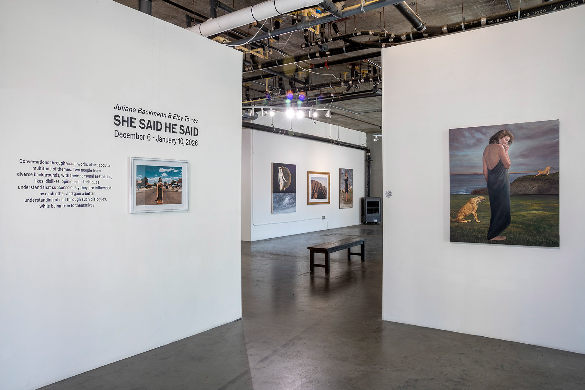 There’s something profoundly unsettled about Flashback to Now, a series of oil on canvas paintings by Los Angeles based Eloy Torrez and photographs by Juliane Backmann.